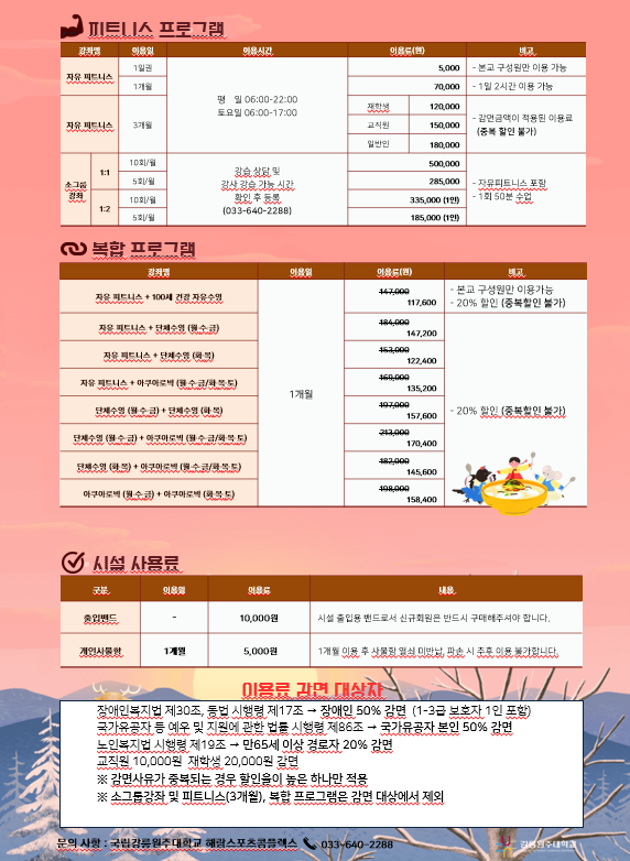 해람 스포츠콤플렉스 2026. 2월 프로그램 회원 모집 안내