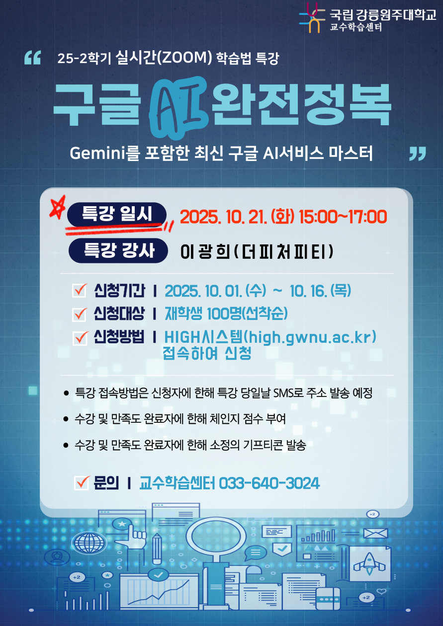 [교수학습센터] 2025학년도 2학기 실시간 학습법 특강 신청 알림