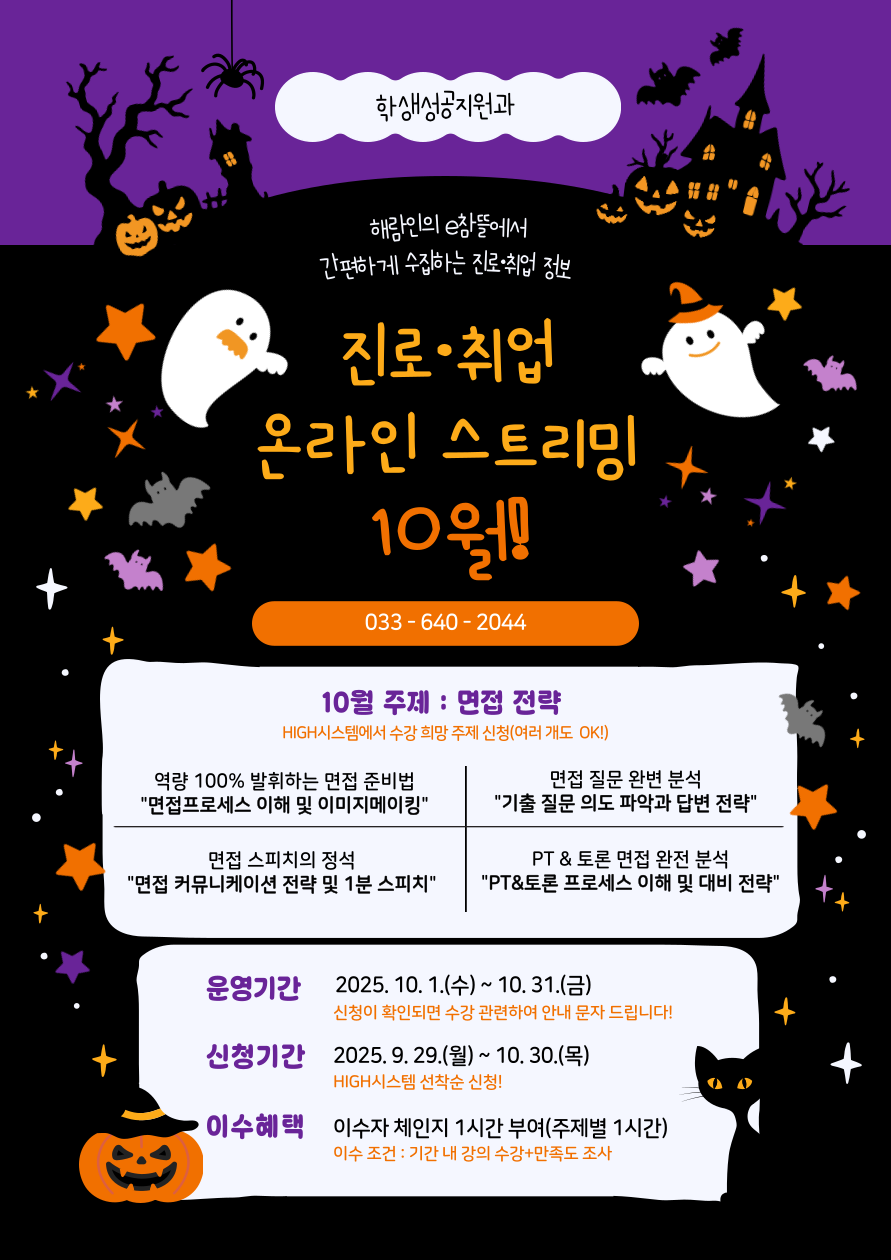 2025학년도 10월 진로·취업 온라인 스트리밍 프로그램 재학생 홍보 요청