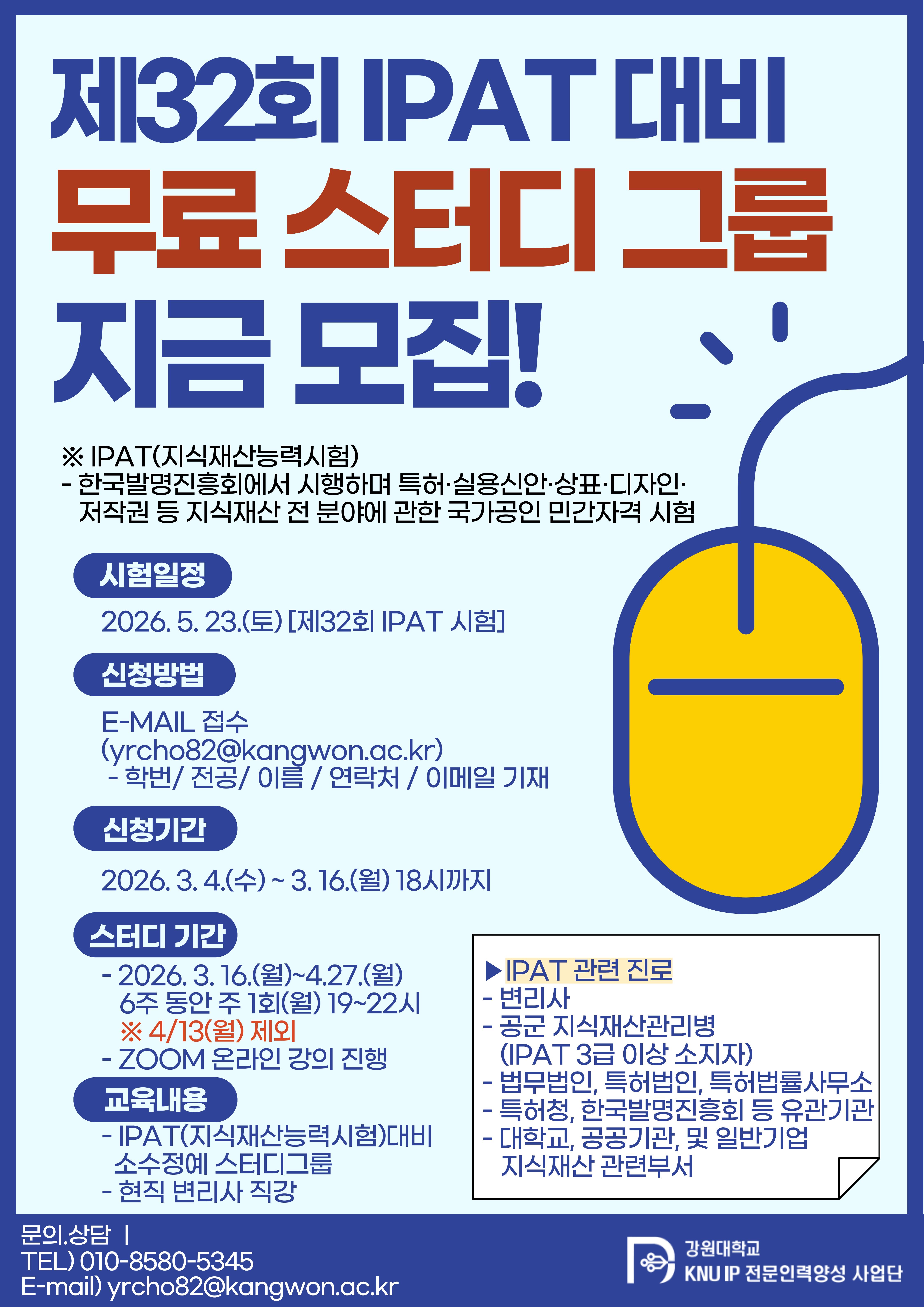 제32회 지식재산능력시험(IPAT) 고득점 대비 스터디그룹 모집 홍보 요청