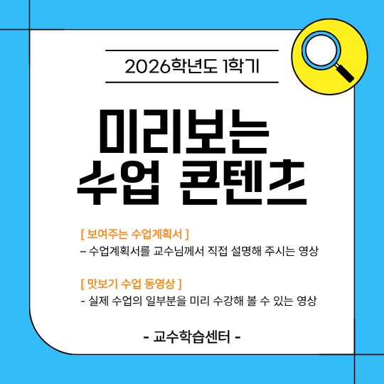 [교수학습센터] 2026학년도 1학기 미리보는 수업 콘텐츠 운영 안내