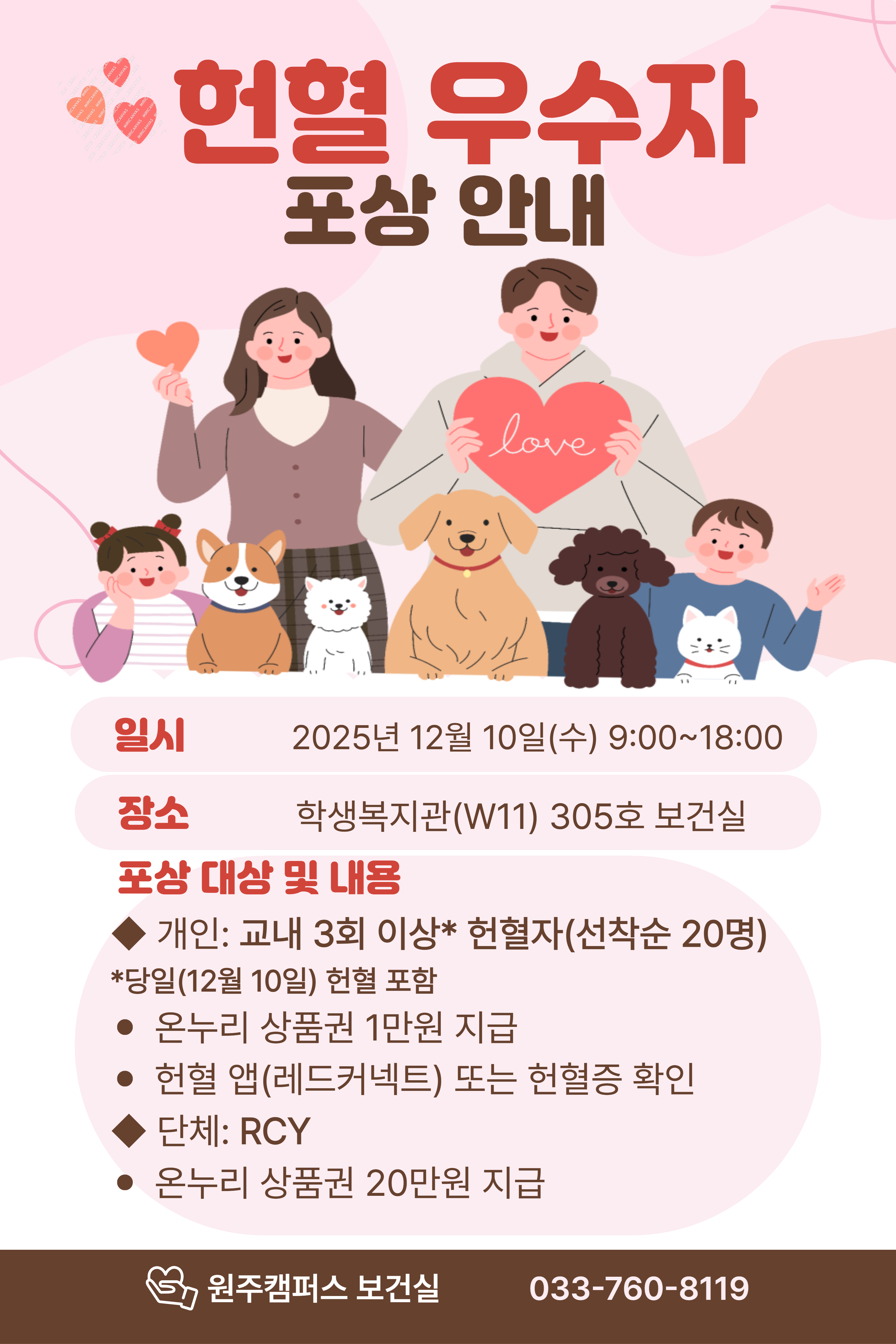 [보건실] 2025년 12월 원주캠퍼스 헌혈캠페인 실시 및 헌혈 우수자 포상금 지급