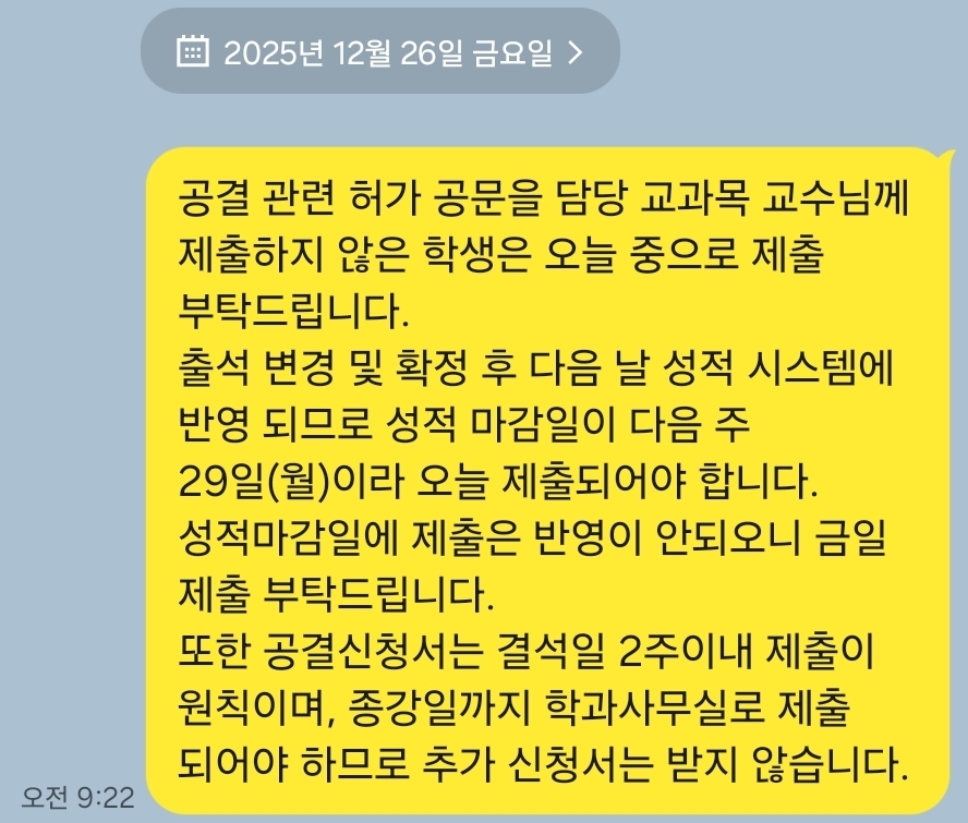 공결 관련 사항 공지드립니다.