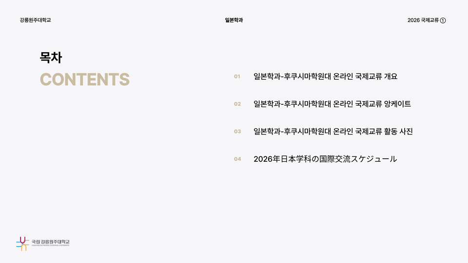 fnctId=bbs,fnctNo=736 [국제교류] 2026 후쿠시마학원대학 온라인 국제교류 보고서 글번호 328196 작성일 2026.03.06 작성자 엄태봉 조회수 76 첨부파일 첨부파일이(가) 없습니다.